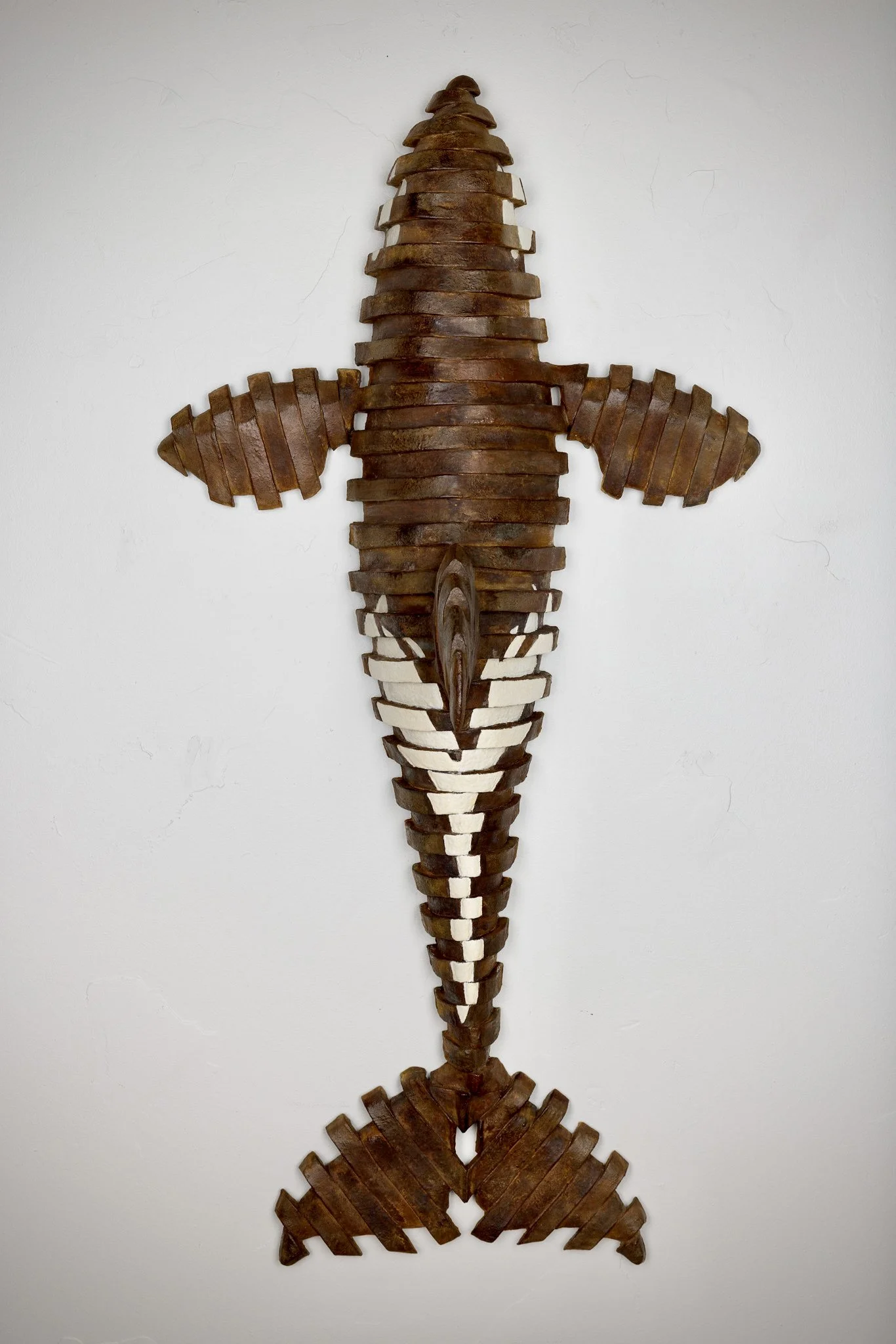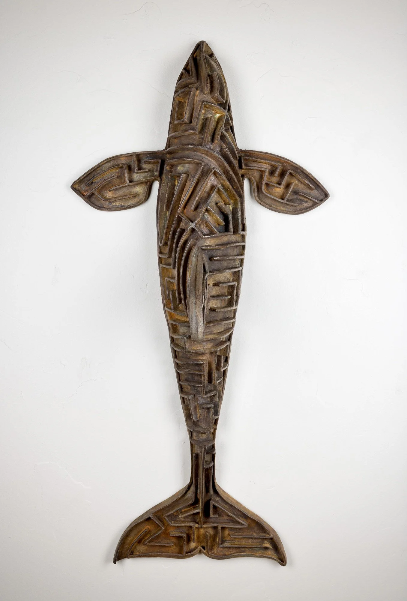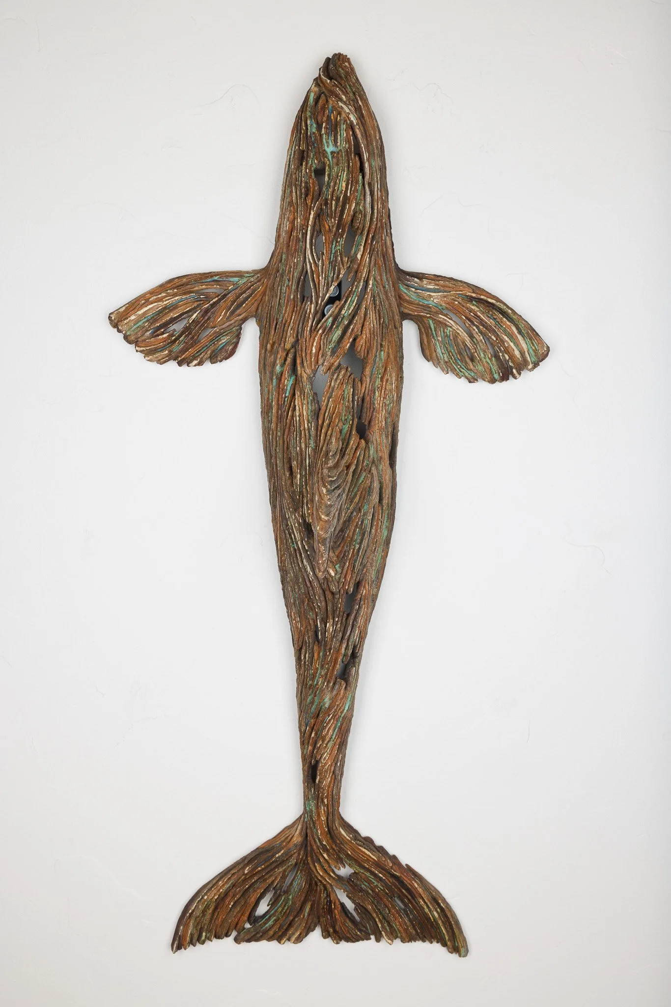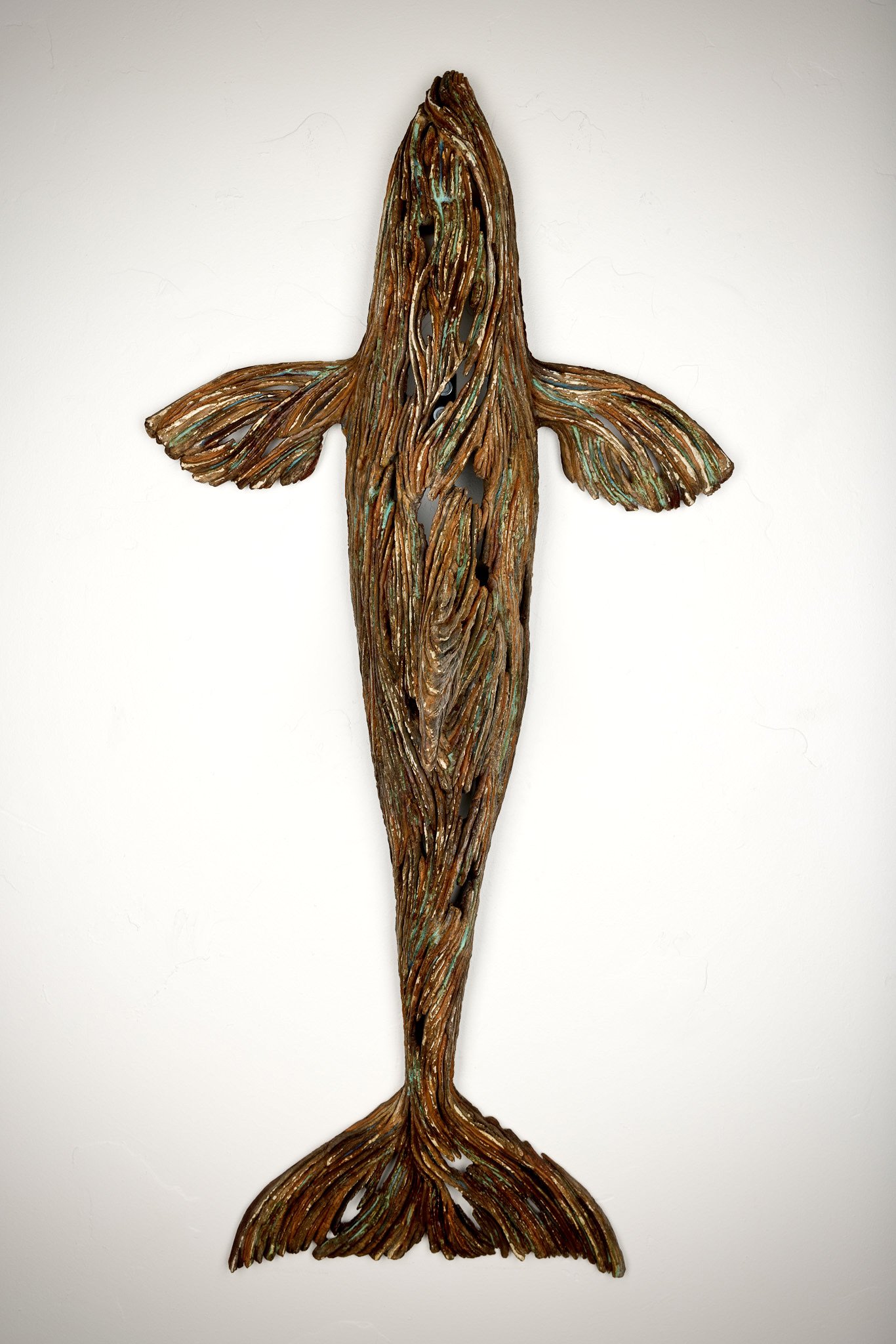 a family trip through the San Juan Islands brought me face-to-face with the magic of wild Orca pods. Witnessing both Transients hunting and Residents navigating their world—even swimming while half-asleep—was profoundly moving. I was compelled to study their form and begin an Orca Whale. But in researching, I encountered a captivating bird’s-eye view photo that changed my artistic direction. The aerial perspective highlighted the stark reality of their struggle—starvation caused by pollution, dams, and overfishing. My art shifted from creating a single sculpture to producing a series with textural, fading variations. Each sculpted form became a mantra, using textural and design variations to symbolize the "disappearance and dissolution" of the species.